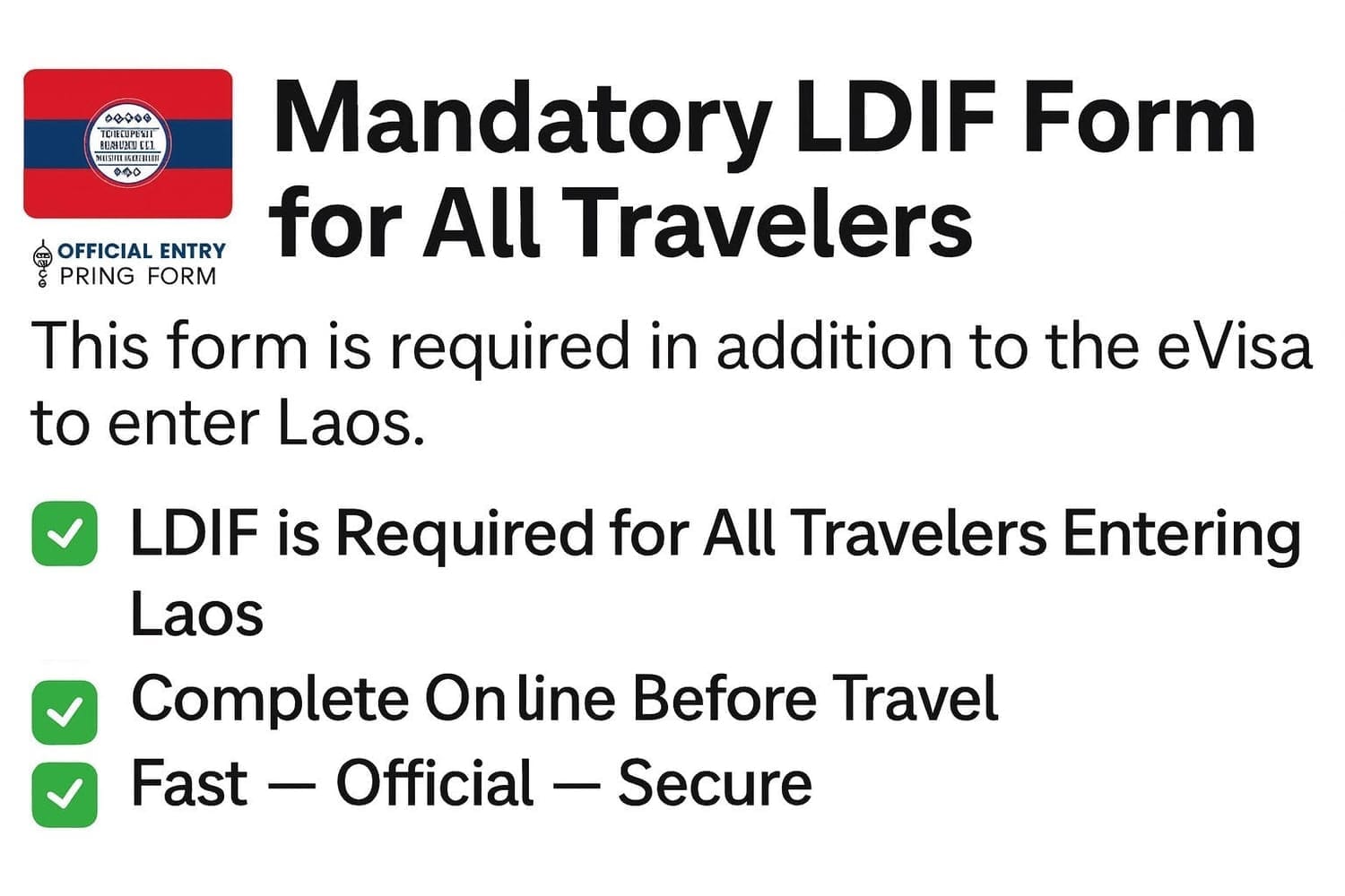 ⚠ Important: Both the eVisa (if required for your nationality) and the LDIF are needed to enter Laos. The LDIF does not replace the visa.